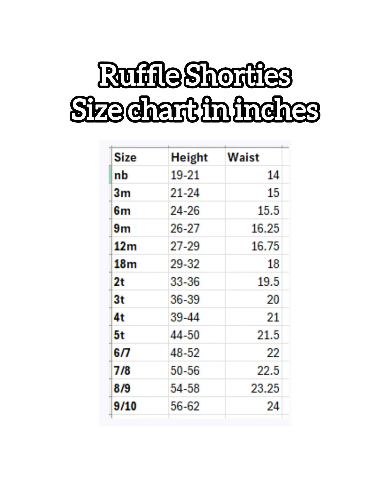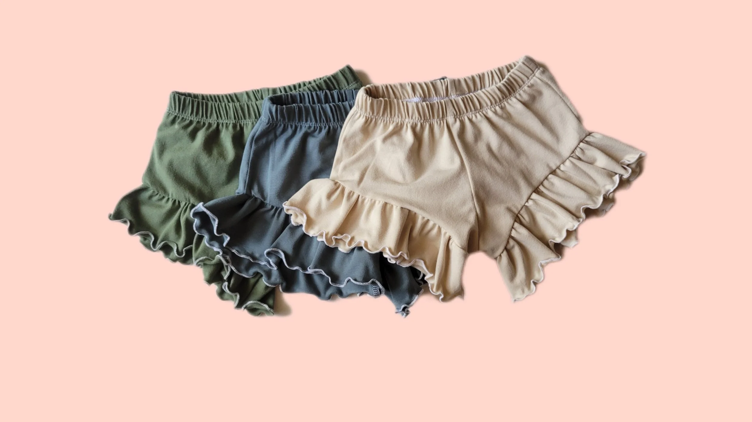 Categories: All Fall Drop Ruffle Shorties Dresses Rib Sets Upcycled Jean Jackets Bows All / Ruffle Shorties Mystery Ruffle Shorties $25.00 Size: nb 3m 6m 9m 12m 18m 2t 3t 4t 5t 6/7 7/8 8/9 9/10 Add To Cart Added! Aqua Ruffle Shorties $25.00 Size: nb 3m 6m 9m 12m 18m 2t 3t 4t 5t 6/7 7/8 8/9 9/10 Add To Cart Added! Biege Ruffle Shorties $25.00 Size: nb 3m 6m 9m 12m 18m 2t 3t 4t 5t 6/7 7/8 8/9 9/10 Add To Cart Added! Stormy Blue Ruffle Shorties $25.00 Size: nb 3m 6m 9m 12m 18m 2t 3t 4t 5t 6/7 7/8 8/9 9/10 Add To Cart Added! Green Ruffle Shorties $25.00 Size: nb 3m 6m 9m 12m 18m 2t 3t 4t 5t 6/7 7/8 8/9 9/10 Add To Cart Added!